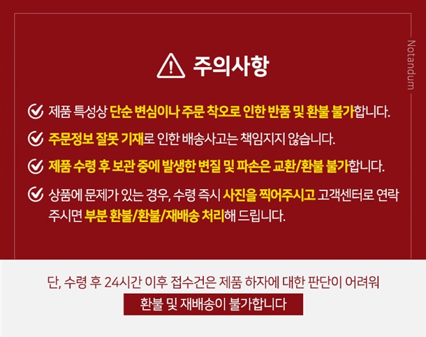 · 제품 하자로 인한 교환/환불은 수령 후 48시간 이내 접수하셔야 합니다.