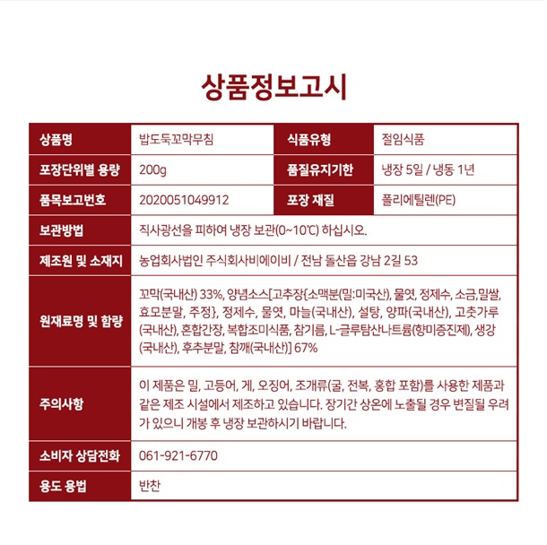 | 1-9. 소비자 안전을 위한 주의사항 (「식품 등의 표시ㆍ광고에 관한 법률 시행규칙」 제5조 및 [별표 2]에 따른 표시사항을 말함) | |